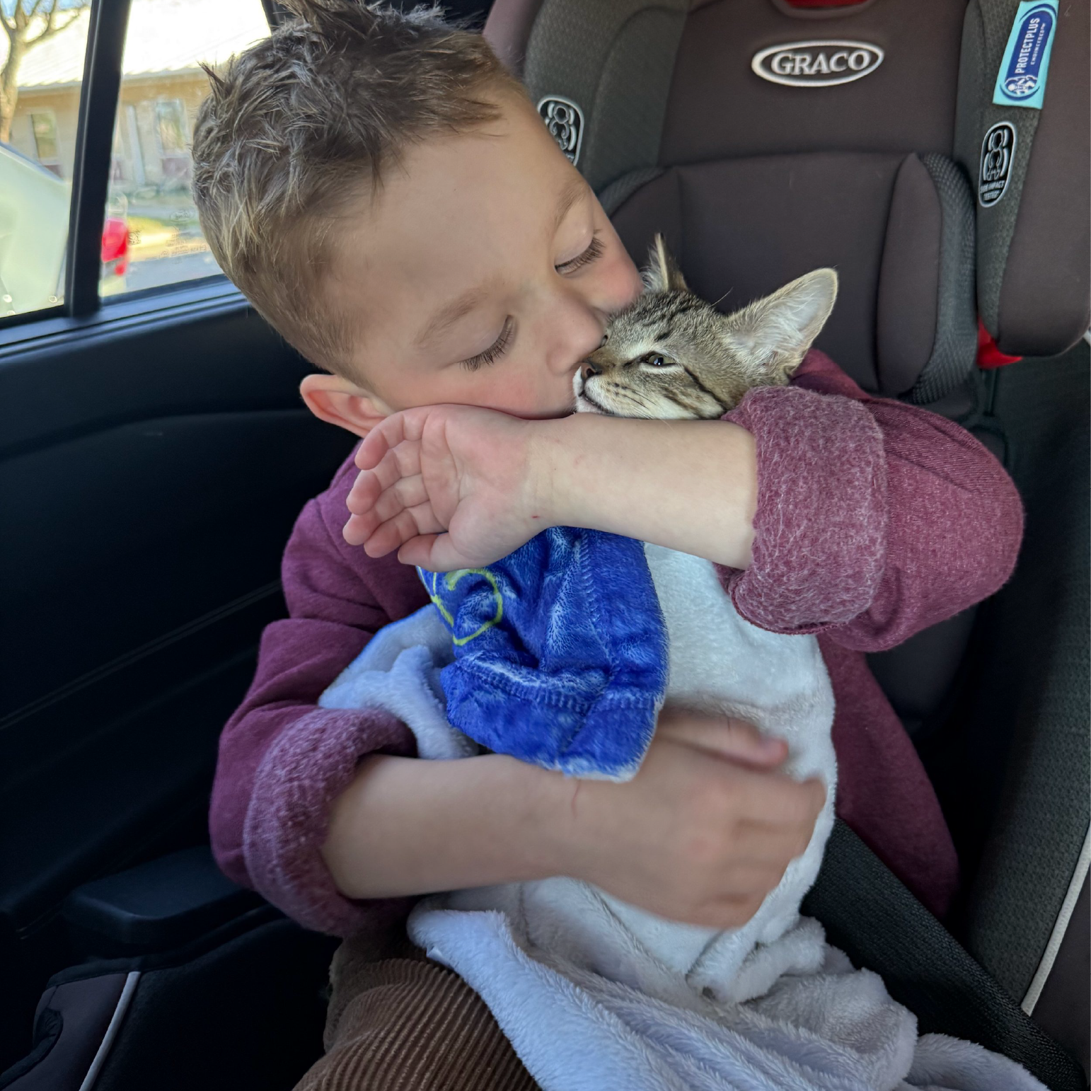 Crù named his new kitten Meteor, after a book he’d read about a mouse who goes to the moon. He hardly left his room for days, content to cuddle and play with Meteor. Boy and kitten are now inseparable. He feeds Meteor and takes care of the litter box. “He’s proud to do it all,” Betsy says. He even gave up his beloved security blanket. He had Meteor, he told his mom, and that was enough. In January, the family went on vacation, but ended up coming back early because Crù missed Meteor too much.