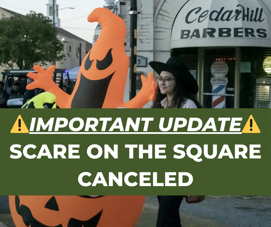 The City of Cedar Hill has canceled this evening’s Scare on the Square event due to a growing threat of severe storms and lightning in the area. Although the event is held rain or shine, the increasing risk of severe weather has made it necessary to cancel in order to protect the safety of the community.